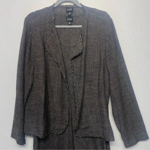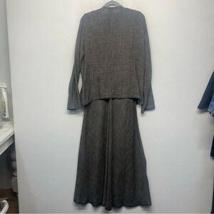 Eileen Fisher S/M Maxi Dress Jacket Set Woven Rayon Linen Blend Bias Cut Brown