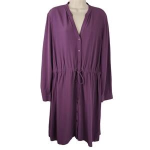 Eileen Fisher SZ L Drawstring-Waist Shirt Dress In Currant Tencel Viscose $298