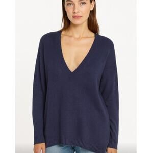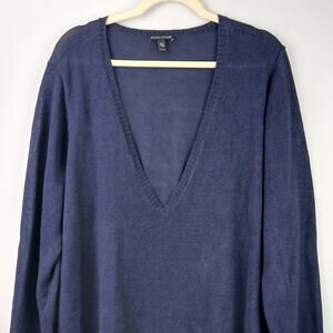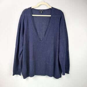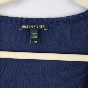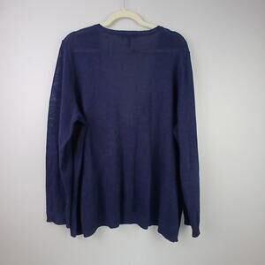 Eileen Fisher SZ XL 100% Linen Deep V Navy Blue Sweater Lightweight Boxy Casual