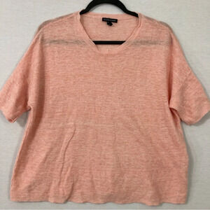Eileen Fisher Salmon Pink Organic Linen Stretch Pullover Relaxed Fit Top Small