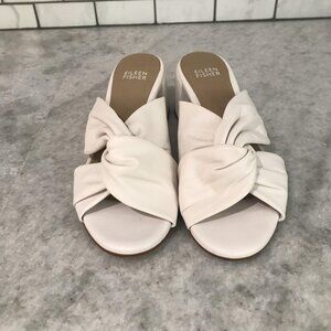 Eileen Fisher Sandals Womens Size 6 White Knot Slide Block Heel Mule Open Toe