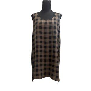 Eileen Fisher Scoop Neck Tunic in Grn/blk Buffalo Check Plaid Silk Top Size XL