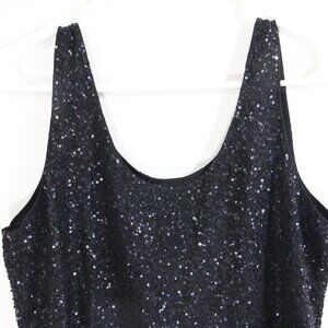 Eileen Fisher Sequin Tank Top Medium Women Black Shell Silk Lined