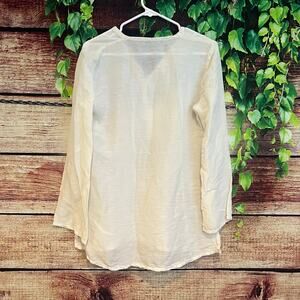 Eileen Fisher Sheer Silk Linen Tunic Blouse Top PM Medium Petite Bone Ivory