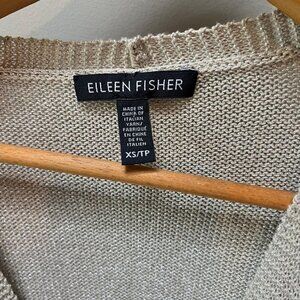 Eileen Fisher Shimmering Gold Open Front Cardigan- Size XS. Recycled cotton blend. In excellent pre-owned condition.