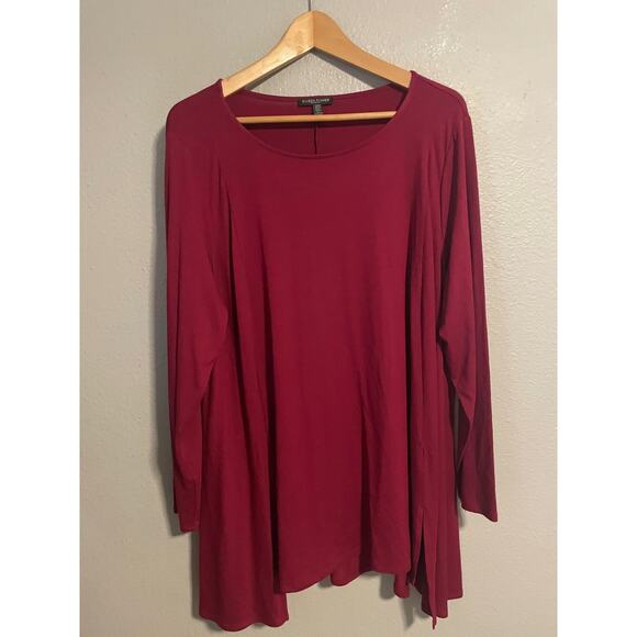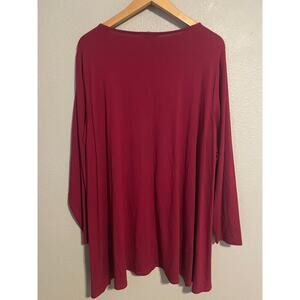 Eileen Fisher Shirt Womens 2X Red Tunic Top Stretch Knit Long Sleeve Plus