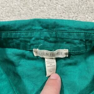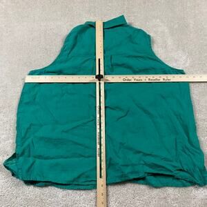 Eileen Fisher Shirt Womens L Green Linen Button Front Sleeveless Top Preppy Work