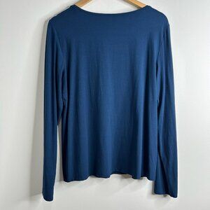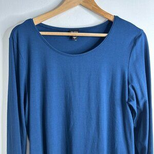 Eileen Fisher Shirt Womens Large Blue Long Sleeve Scoop Neck Stretch Jersey Knit