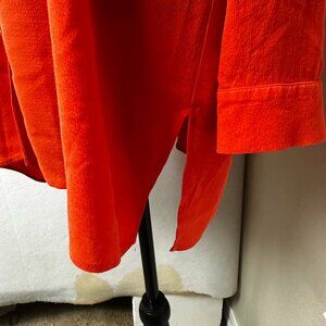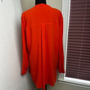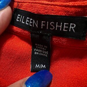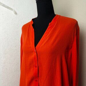 Eileen Fisher Shirt Womens M 100% Silk Tunic Blouse orange Popover V-Neck