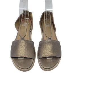 Eileen Fisher Shoes Mews Leather Slip-On Espadrilles Peep Toe Metallic Gold 6.5