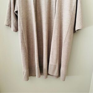 Eileen Fisher Short Sleeve Open Front Cardigan Sweater Tan Sz Small