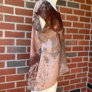 Eileen Fisher Short Sleeve Silk Round Neck Blouse - Abstract Muted Fall Colors - Sml