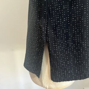 Easy and classic short sleeve pop over short sleeve top. Keyhole one button closure at nape of neck. Black with dot and dash pattern. Perfect condition. Size 6, displayed on my size 6 mannequin.