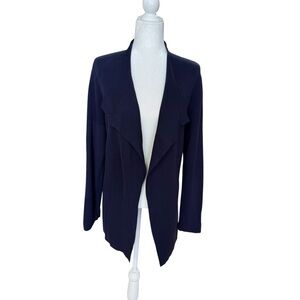 Eileen Fisher Silk Blend Open Front Knit Cardigan Sweater Size M Navy Blue Minimalist