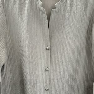 Eileen Fisher Silk Blend Textured Button Blouse Sz M Taupe Old Money Luxury