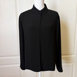 Eileen Fisher Silk Blend Textured Jacket Stand Collar Magnetic Closure in great preowned condition.
