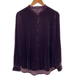 Eileen Fisher Silk Blend Velvet Band Collar Long Shirt Easy Fit Long Length XS
