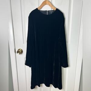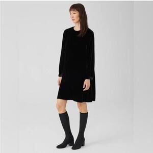Eileen Fisher Silk Blend Velvet Crew Neck Keyhole Back Black Mini Dress M