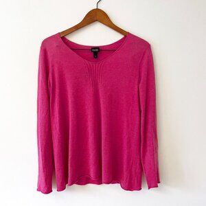 High quality materials in a lovely vivid pink. Softened V-neck (somehow a hybrid of scoop and V), long sleeves.