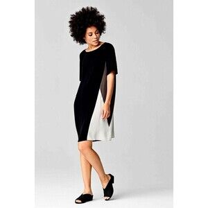 Eileen Fisher Silk Color Block Shift Dress XXS Oversized Minimal comfy