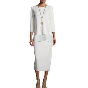 Eileen Fisher - Bateau Neck Boxy Top in Silk Cotton Interlock (80% Silk), color Bone, size Medium.