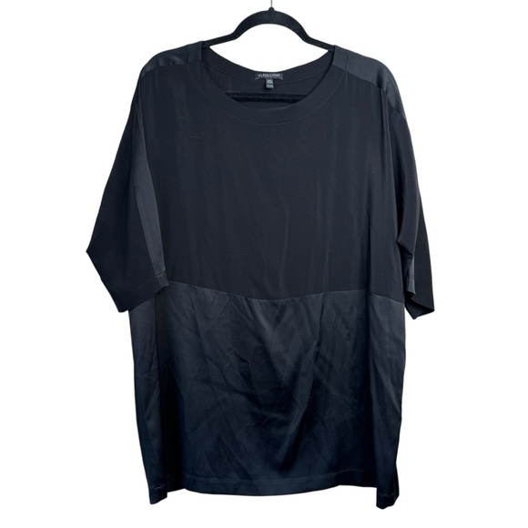 Eileen Fisher Silk Crepe de Chine Shirt Dolman Sleeve Blouse Black PL L5
