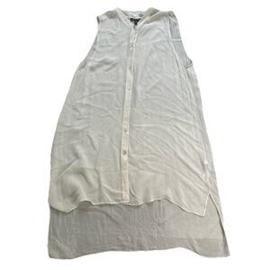 Eileen Fisher Silk Crepe de Chine Tunic Button Front Sleeveless Top, Size Large