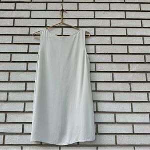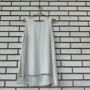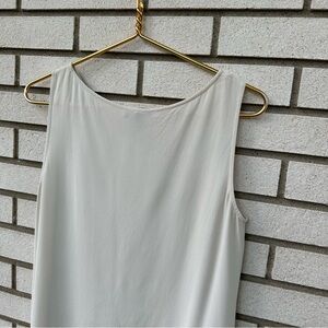 Eileen Fisher Silk Georgette Crepe Ballet Neck Long Tank Hi Low Hem Bone Ivory