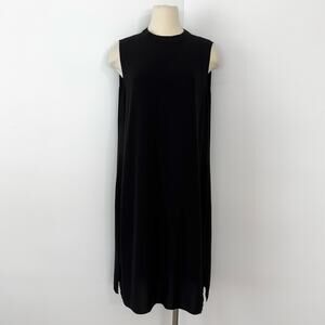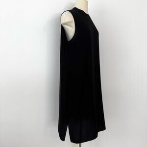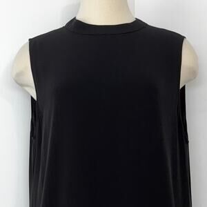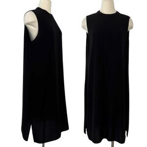 Eileen Fisher Silk Georgette Crepe High Neck Dress Sleeveless in Black L NWT