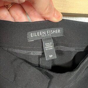 Eileen Fisher Silk Georgette Crepe Pants Size 8 Petite Black Side Stripe Career