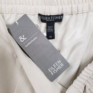 Eileen Fisher Silk Georgette Crepe Pants Womens 2X Bone Lined Tapered Drawstring
