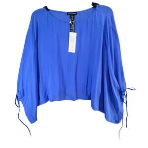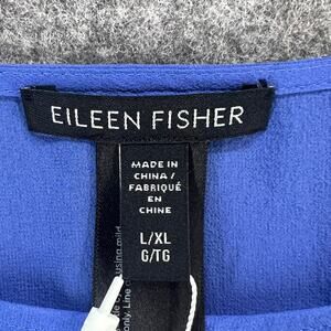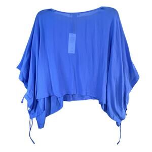 Eileen Fisher Silk Georgette Poncho Womens Size L Blue Sheer Cropped Boxy Ethereal