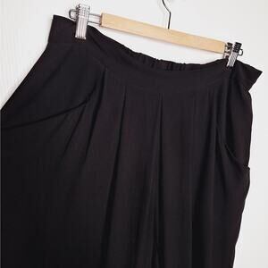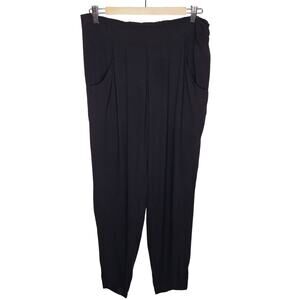 Eileen Fisher 100% Silk Georgette Slouchy Pleated Tapered Lantern Pants Pull On Small Black Lagenlook