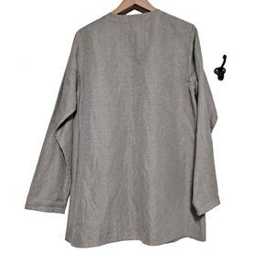 • Eileen Fisher Silk Jacket Woman Size Small Linen Blend Gray Layerin Open Elegant