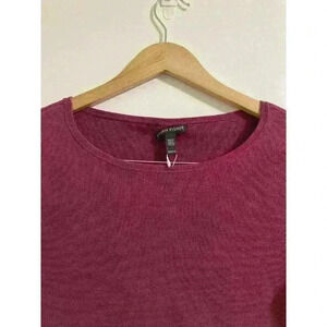 Eileen Fisher Silk Organic Cotton Interlock Bateau Neck Sweater 3/4 Slee…