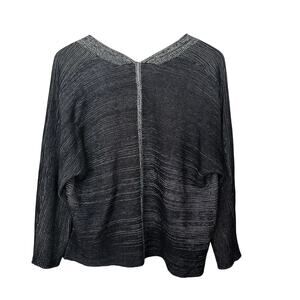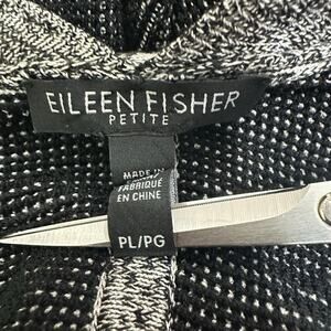 Eileen Fisher Lightweight Open Cardigan Top Womens Black White Career Petite Large Long Sleeve 80% Silk/20% Organic Cotton No Pockets Slimming Flattering Career Work