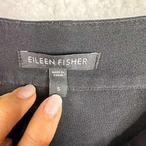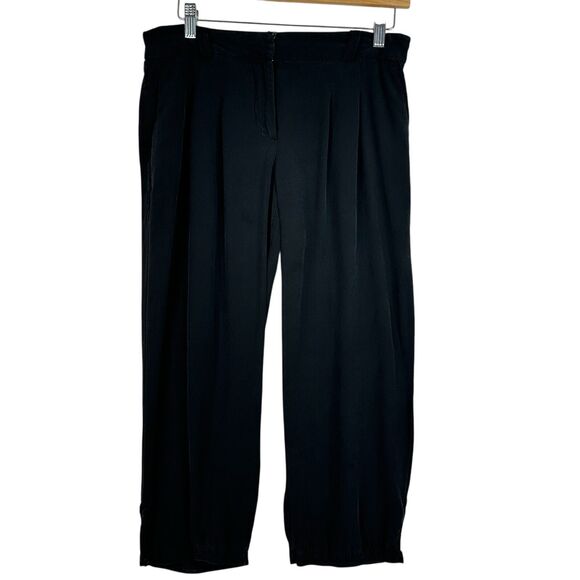 Eileen Fisher Silk Pants Sz S Black Cropped Ankle Button Trousers Quiet Luxury