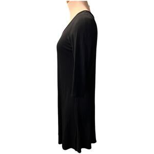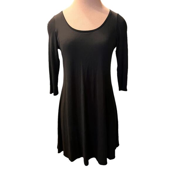 Eileen Fisher Silk Scoop Neck 3/4 Sleeve Tee Shirt Dress SZ XS Black Ballet