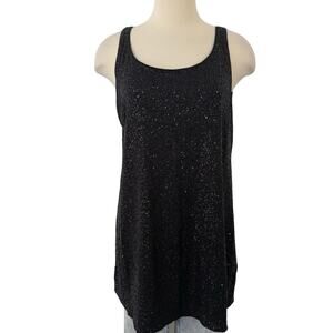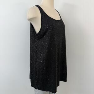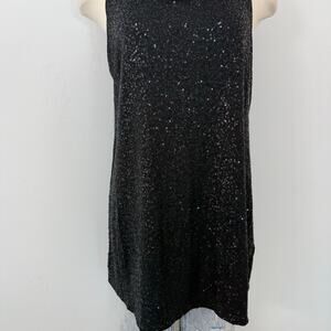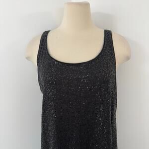 Eileen Fisher Silk Sequin Tank Mini Short Dress or Tunic Top Blouse Black XL