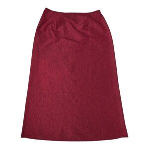 Eileen Fisher Silk Skirt Red Crinkle Maxi A Line Womens Medium