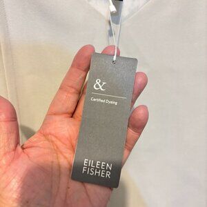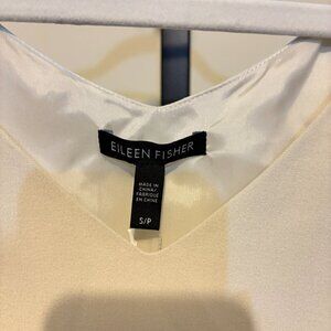 Eileen Fisher Silk Two Tone V Neck Sleeveless Shift Dress Bone Black