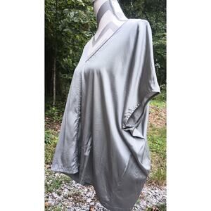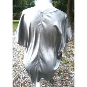 Eileen Fisher Silk V Neck Flowy Silver Gray Short Sleeve Blouse Top Shirt XL