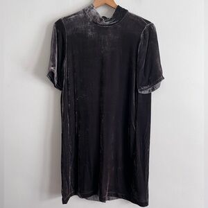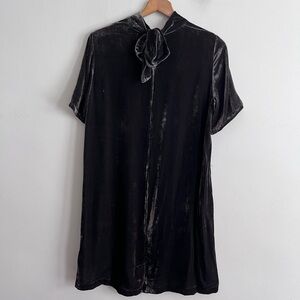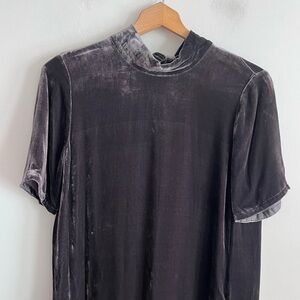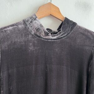 Eileen Fisher Silk Velvet Gray Shirt Bow Back Mini Dress