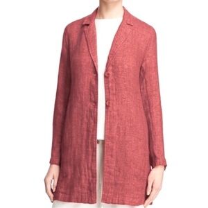 Eileen Fisher Silk/Linen Burnt Orange Open Oversized Cardigan Jacket