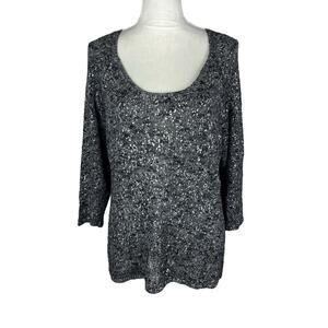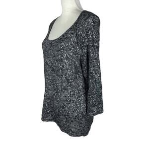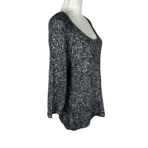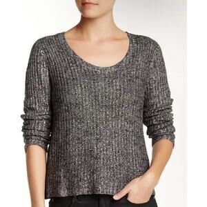 Eileen Fisher Silver Metallic Knit Linen Sweater Scoop Neck Long Sleeve Size XL
