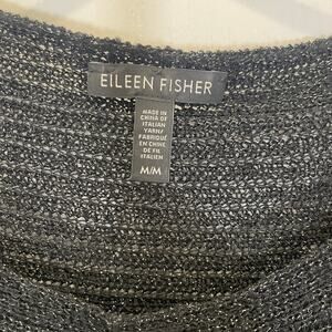Eileen Fisher Silver Sparkle Metallic Knit Wool Pullover Sweater Black M