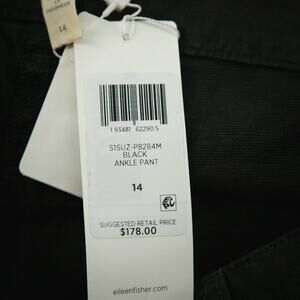 Eileen Fisher Size 14 Black Tapered Ankle Length Organic Cotton Hemp Pants NEW