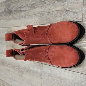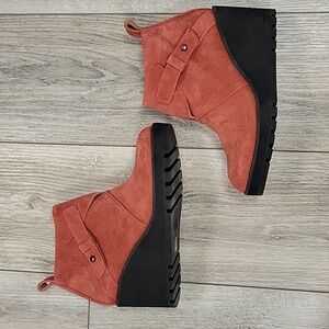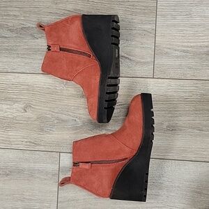 Eileen Fisher Size 6 Red Tinker Wedge Bootie in Suede