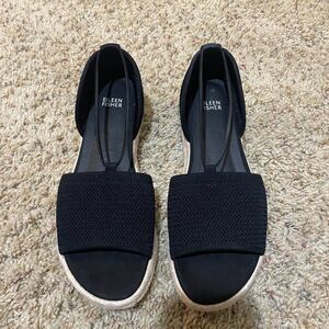 Eileen Fisher Mews Espadrille Sandals. Neutral black color. Open toe.