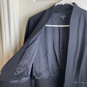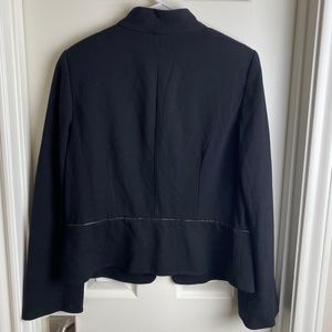 Eileen Fisher Size M Blazer Black Jacket Peplum Hem Leather Trim